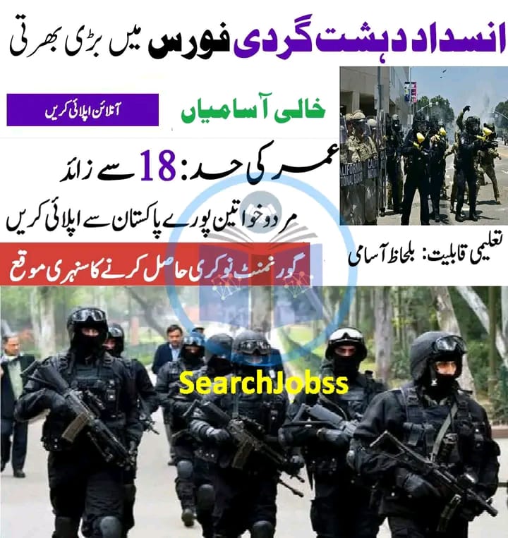 انسدادِ دہشت گردی فورس میں شاندار نوکریوں کا اعلان کیا گیا ہے
