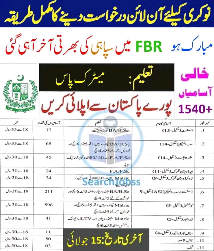 ایف بی آر میں شاندار نوکریوں کا اعلان کیا گیا ہے