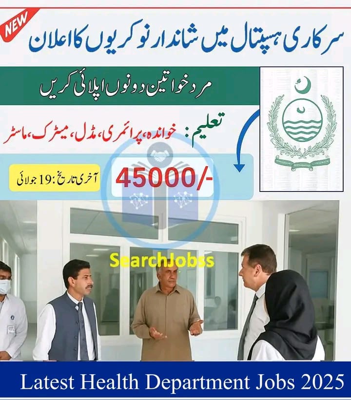 سرکاری ہسپتال محکمہ صحت میں شاندار نوکریوں کا اعلان کیا گیا ہے