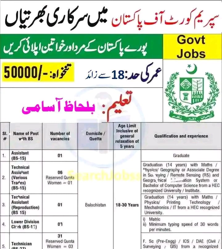 سپریم کورٹ میں شاندار نوکریوں کا اعلان کیا گیا ہے