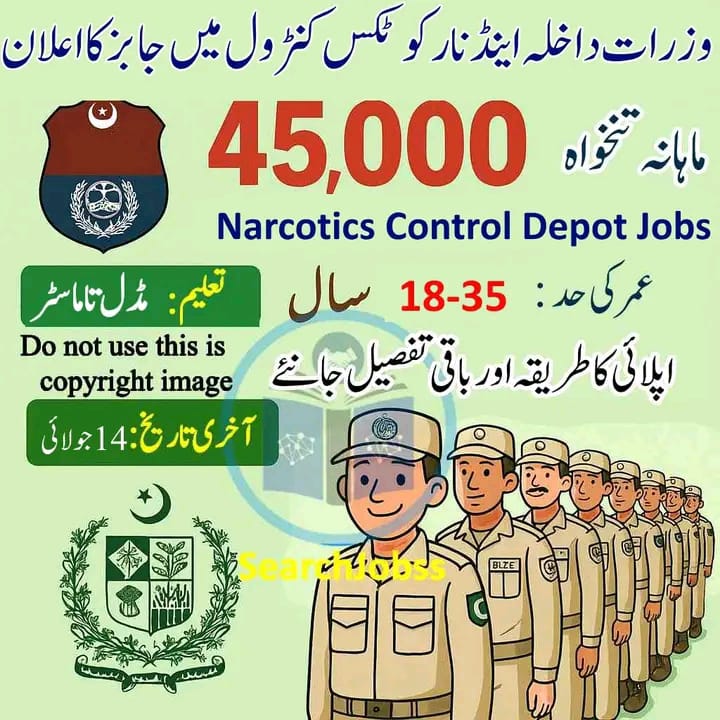 وزارت داخلہ اینڈ نارکوٹکس کنٹرول میں شاندار نوکریوں کا اعلان کیا گیا ہے