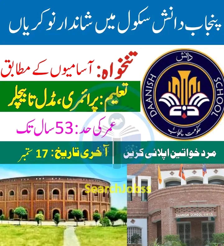پنجاب دانش سکول میں شاندار نوکریوں کا اعلان کیا گیا ہے