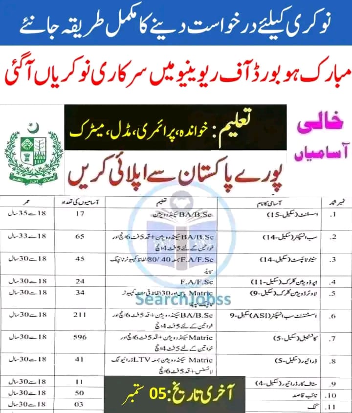 اپلائی کرنے کے لیے رابطہ: hr@boardofrevenue.gov.pk