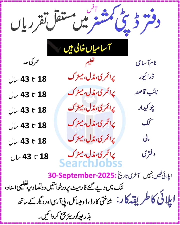 اپلائی کرنے کے لیے رابطہ: hr@dcoffice.gov.pk