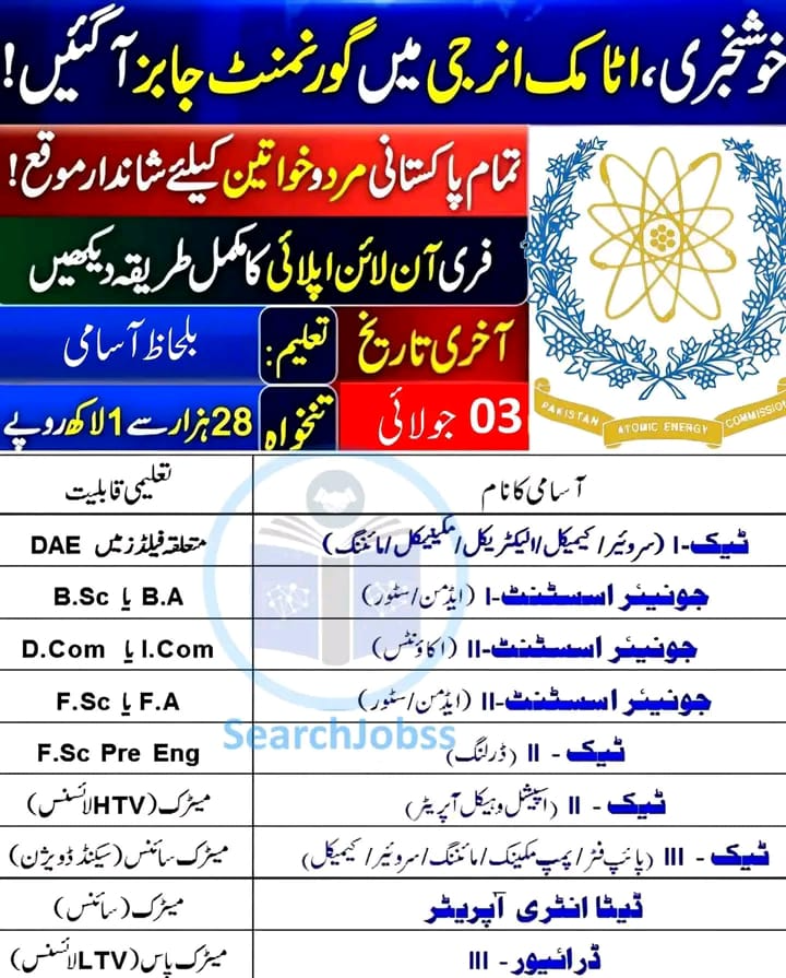 اٹامک انرجی کمیشن شاندار نوکریوں کا اعلان کیا گیا ہے