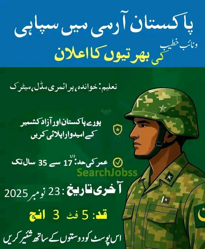 پاک آرمی سپاہی میں شاندار نوکریوں کا اعلان کیا گیا ہے